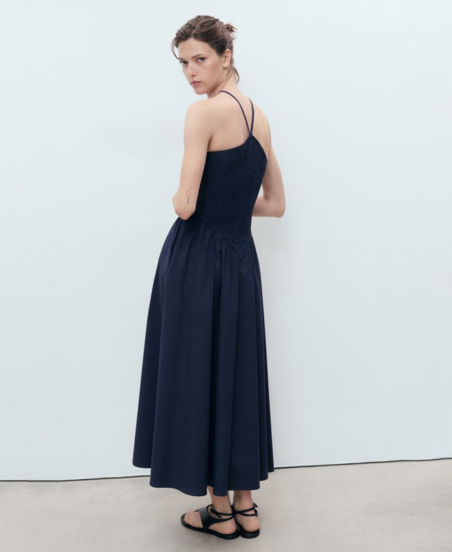 Женское платье с комбинированным воротником-халтером MANGO, Dark Navy
