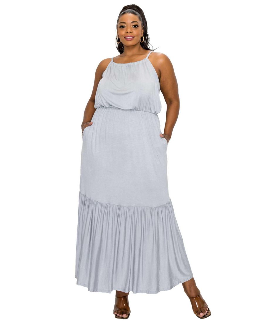 Плюс размер Платье макси с карманами Ameli на бретельках L I V D, Silver