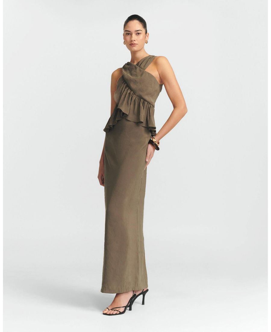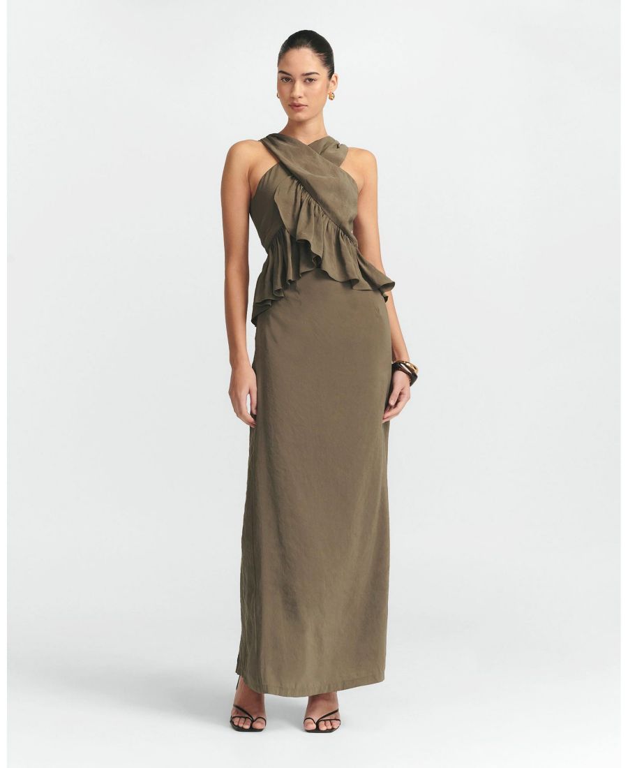 Платье-макси Aloe от ST MRLO - это тканое платье длиной до щиколотки, воплощающее непринужденную элегантность в прибрежном стиле. Асимметричный вырез и ниспадающие оборки создают эффектный силуэт, который красиво развевается, идеально подходящий для летних вечеров и особых случаев.