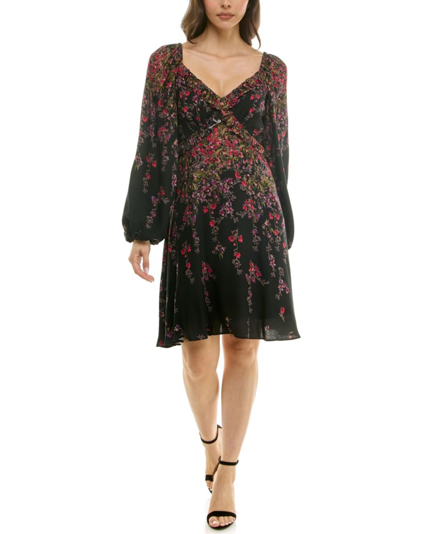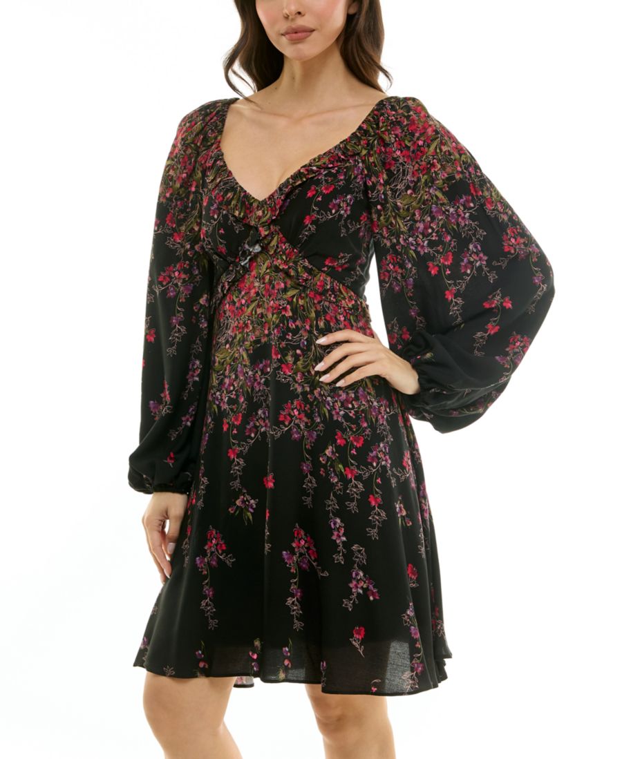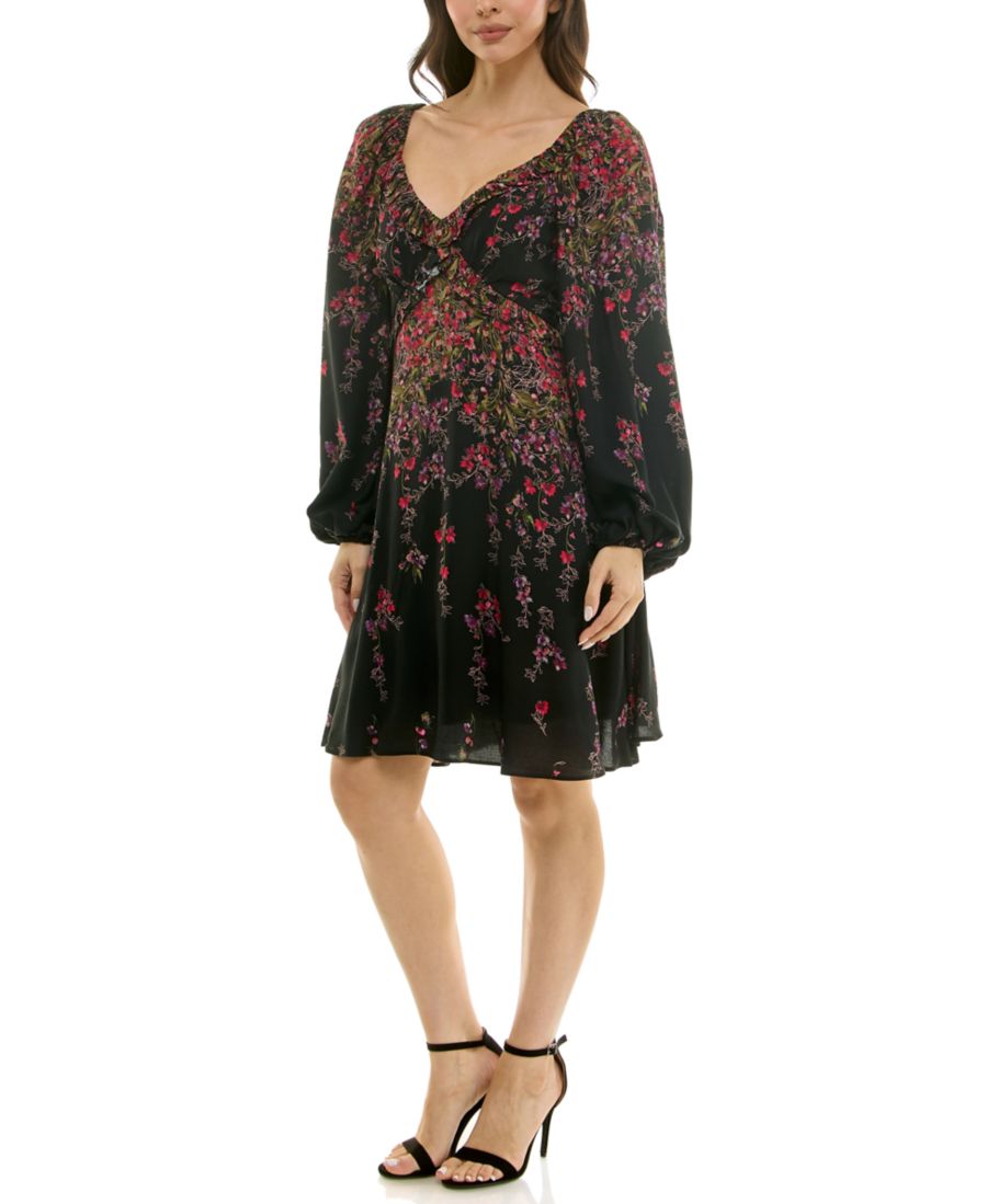 Платье-трапеция с V-образным вырезом, облегающее и расклешенное Taylor, Black Multi