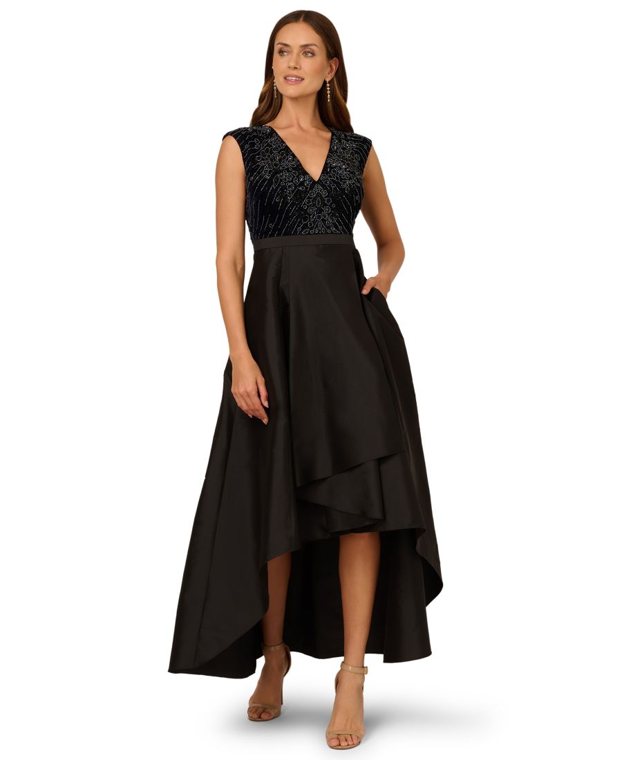 Женское платье из бархатной тафты с бисером Adrianna Papell, NAVY BLACK
