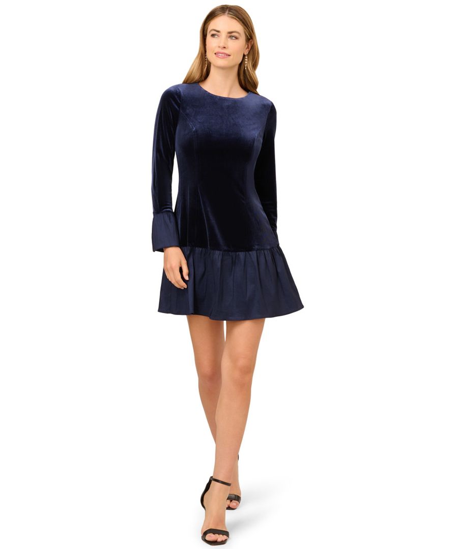 Женское бархатное мини-платье с оборками Adrianna Papell, Midnight