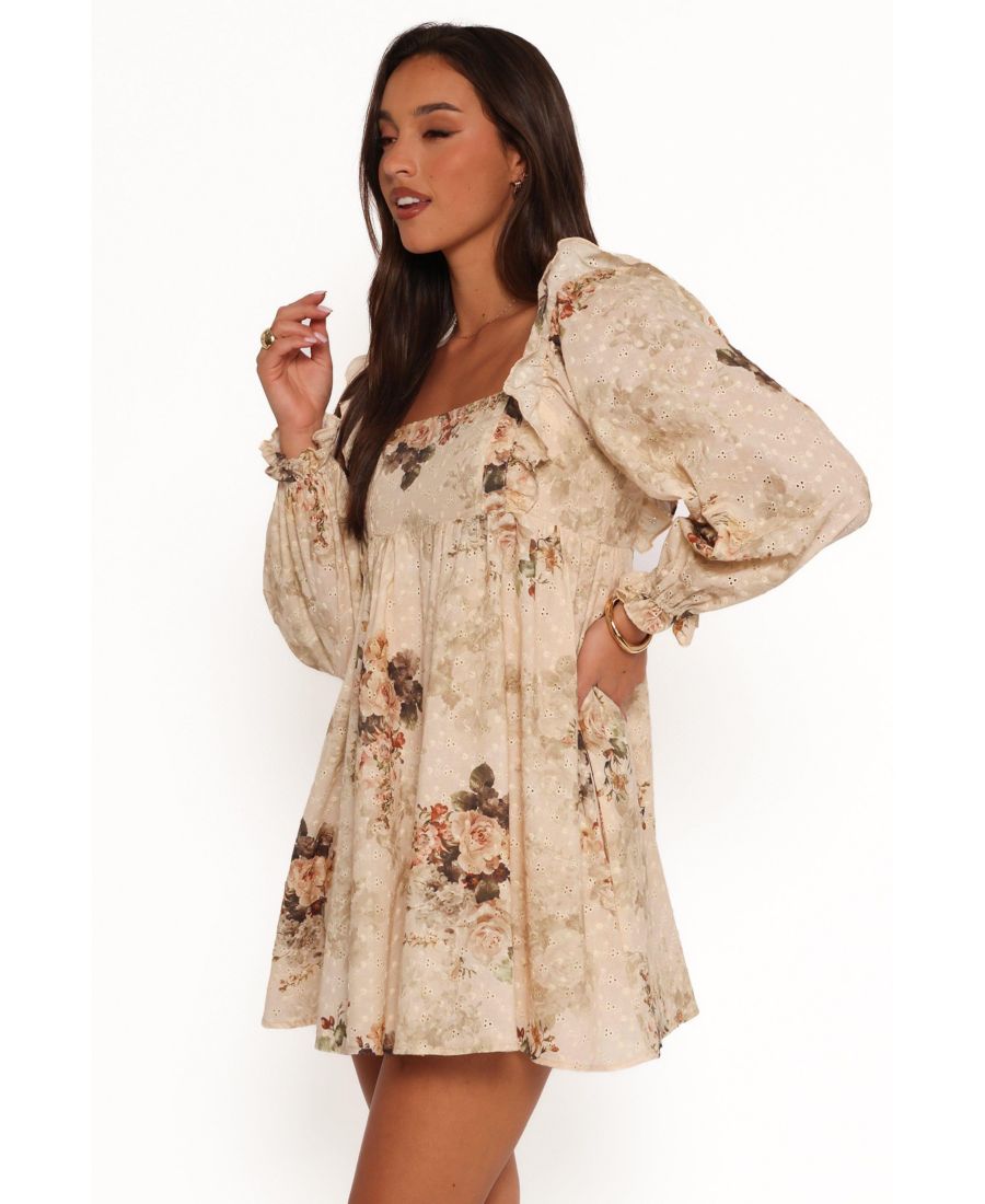 Представляем мини-платье Tiarny в бежевом цвете с цветочным принтом - ваш новый фаворит среди платьев, сочетающих в себе непринужденную элегантность и игривое очарование. Представьте, как вы выходите в этом платье в стиле бэби-долл, где мини-длина добавляет образу игривости.