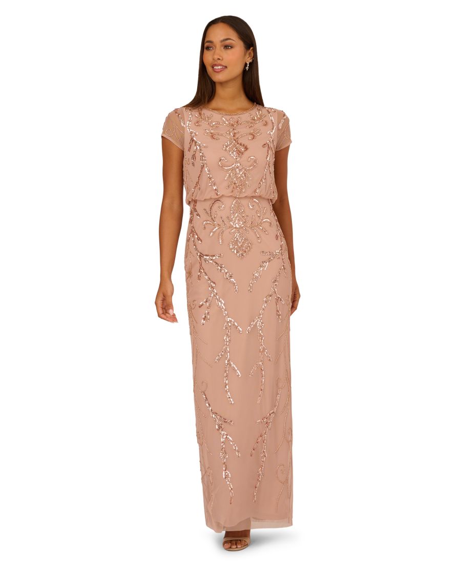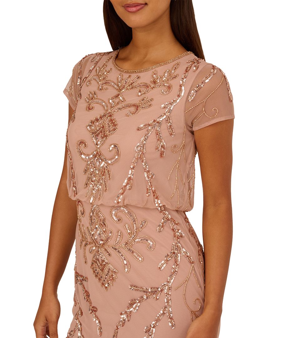 Длинное платье-блузон с бисером Adrianna Papell, Rose Gold