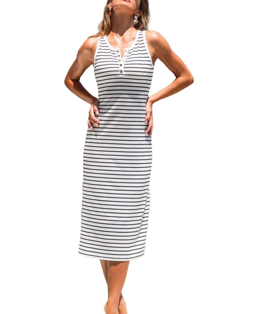Женское полосатое пляжное платье миди Midtown Move Cupshe, White