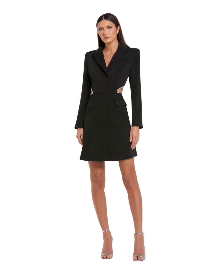 Женский блейзер из крепа с отделкой стразами, мини-платье Mac Duggal, Black