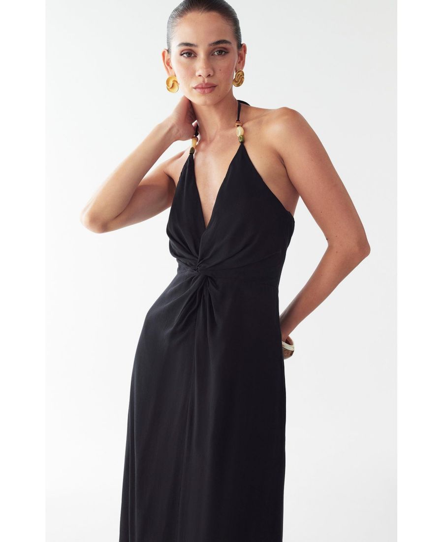 Платье ALAIA от ST MRLO - это элегантный фасон макси, воплощающий непринужденную прибрежную изысканность. Благодаря изящному воротнику-халтеру и нежному шалфейно-зеленому оттенку, это платье олицетворяет собой сдержанную роскошь и современную женственность.