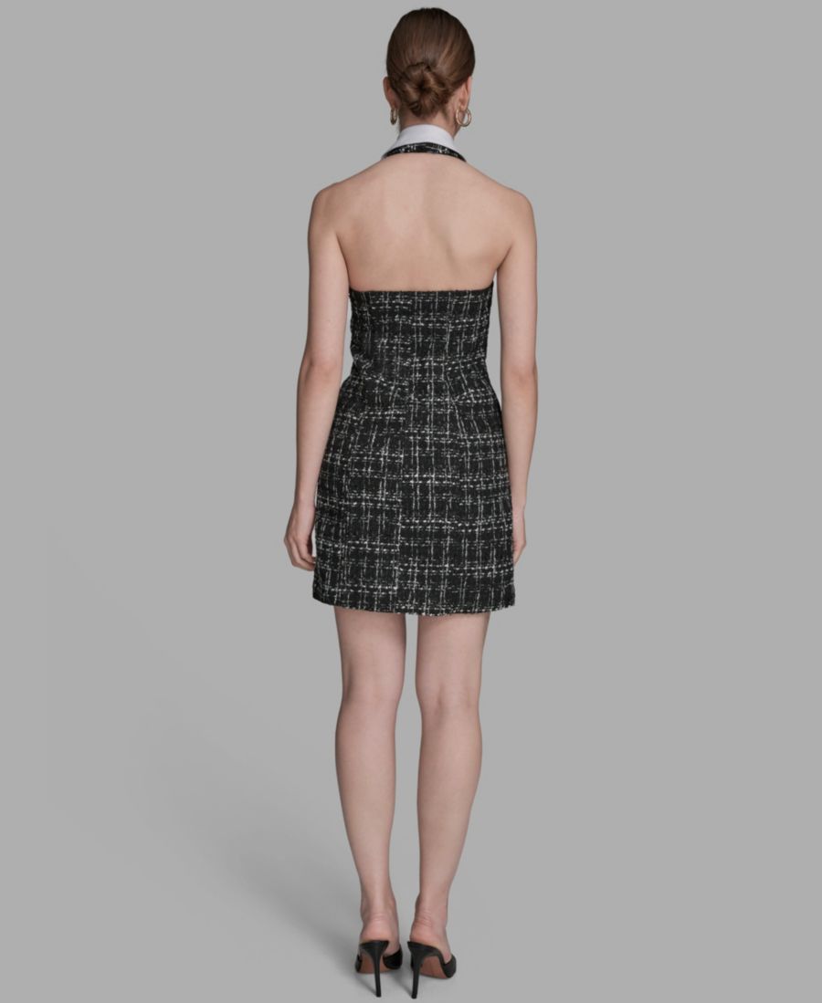 Женское клетчатое платье из букле с воротником-халтером (два в одном) BCBG, Black Multi