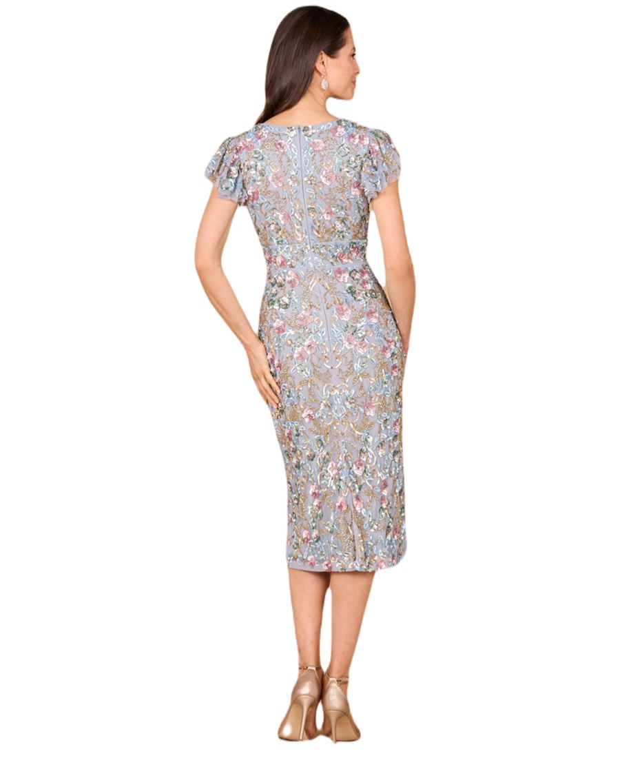 Это изысканное миди-платье с цветочным узором и бисером добавит элегантности и утонченности вашему стилю. Скромный V-образный вырез и короткие рукава придают платью утонченность и гламур. Идеально подходит для особых случаев или вечернего выхода в свет.
