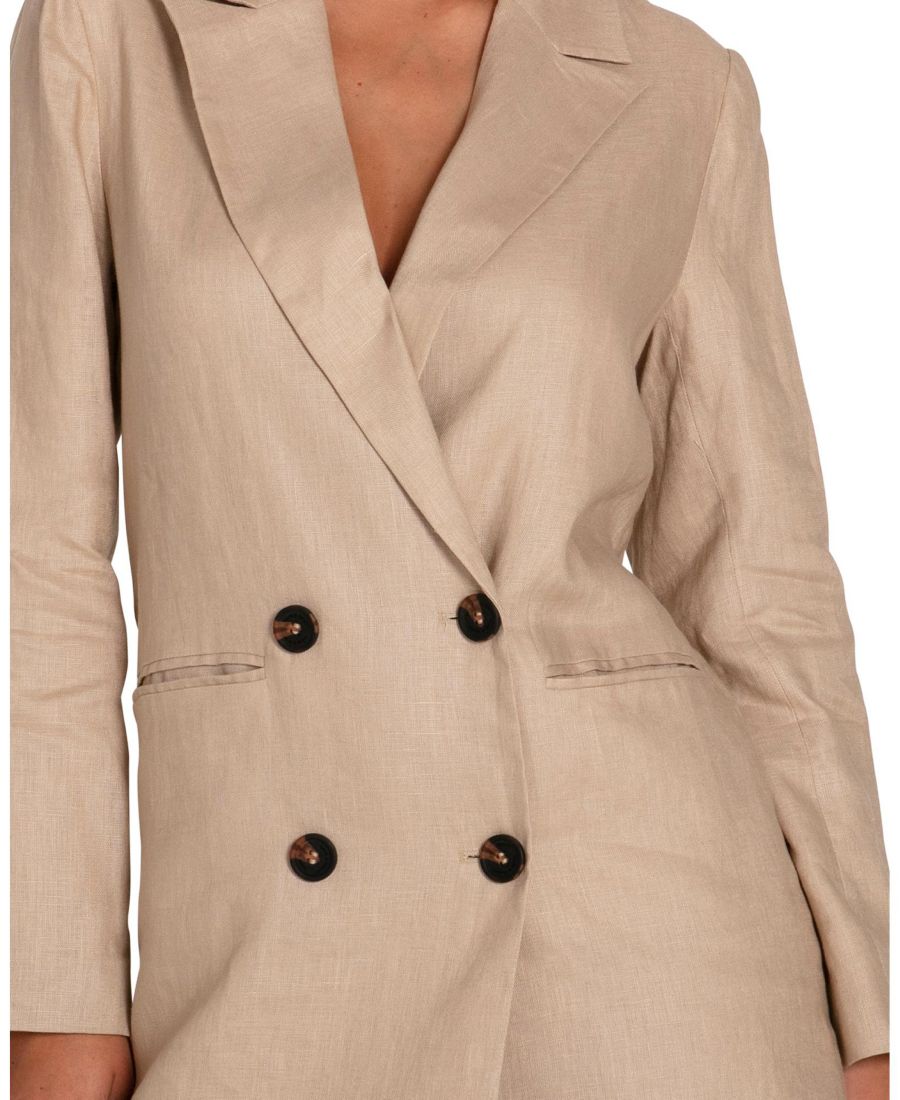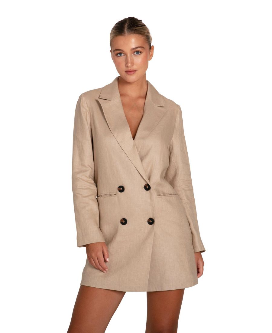 Дополните свои повседневные образы летом платьем-пиджаком Princess Anna. Свободный, но элегантный, этот льняной пиджак свободного кроя можно носить как самостоятельно, так и поверх мини-платья-комбинации, или как жакет с джинсами и укороченным топом.