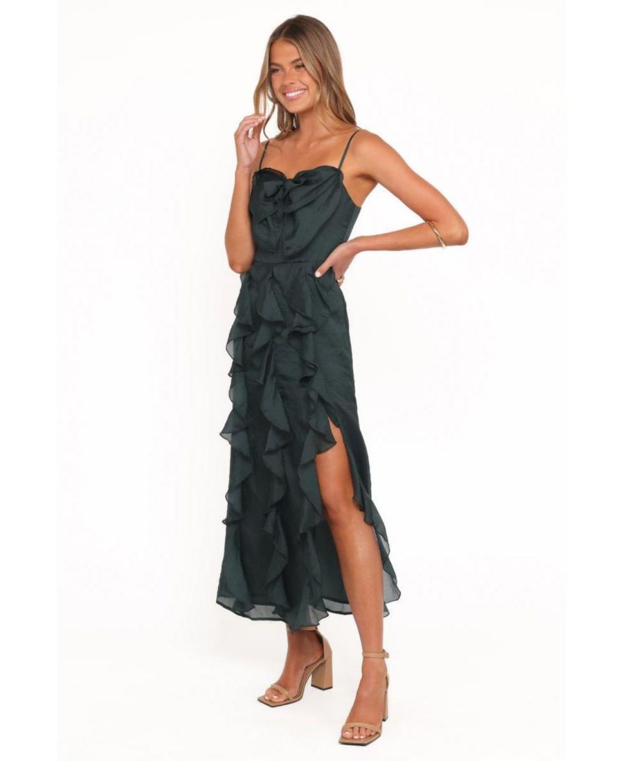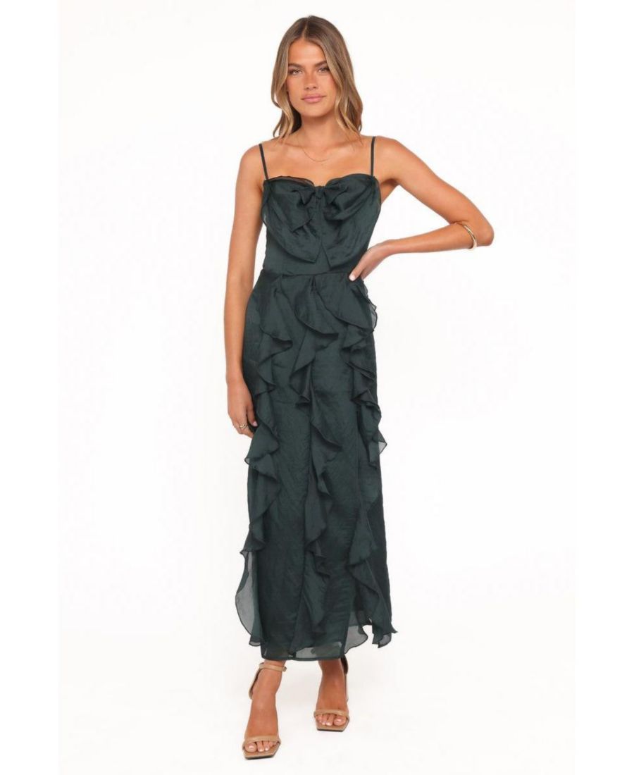 Раскройте свою уверенность в себе с помощью миди-платья Adelyn потрясающего изумрудного цвета. Это эффектное платье имеет изящный квадратный вырез, который прекрасно подчеркивает декольте, а тонкие регулируемые бретели обеспечивают идеальную посадку.