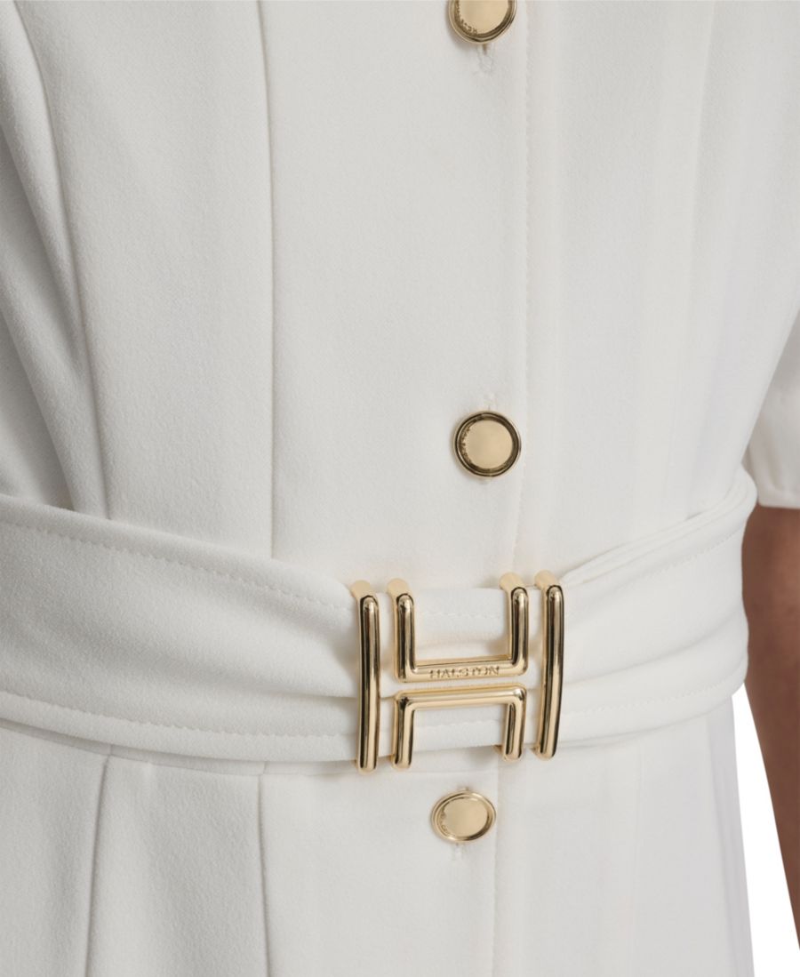 Создайте уверенный и элегантный образ в этом миди-платье от Halston с изысканной планкой спереди. Воротник добавляет вневременной нотку элегантности, создавая утонченный образ, который идеально подходит как для рабочих дней, так и для особых случаев.