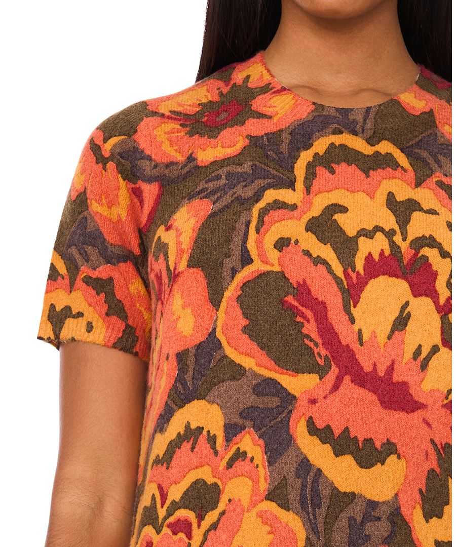 Платье-футляр с короткими рукавами и принтом, укороченное MSK, Orange multi