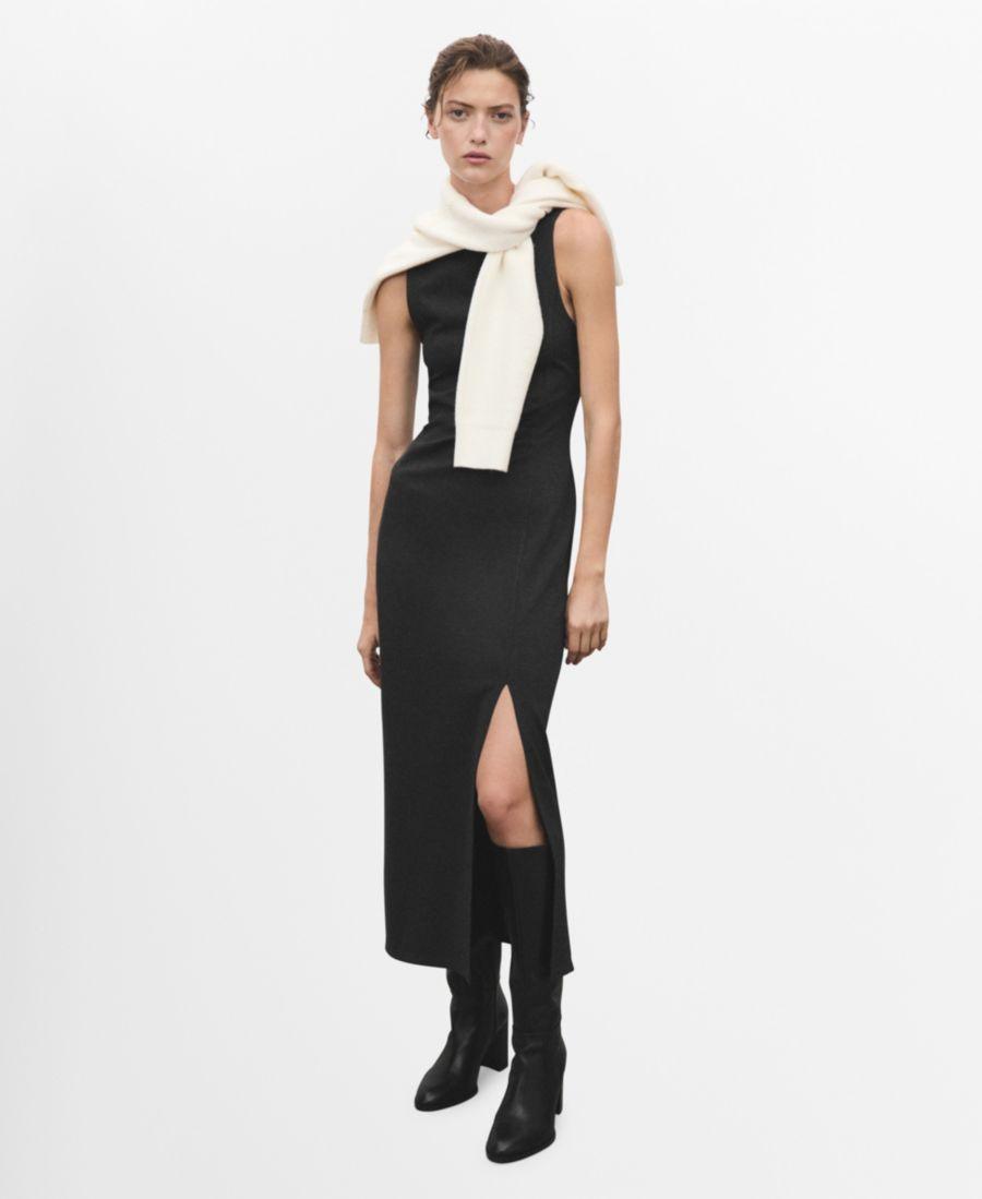 Современное и смелое платье с вырезами и сборками от Mango акцентирует внимание на деталях. Это платье миди из эластичной ткани имеет облегающий силуэт с круглым вырезом, широкими бретелями без рукавов, боковыми оборками и боковым разрезом по низу.