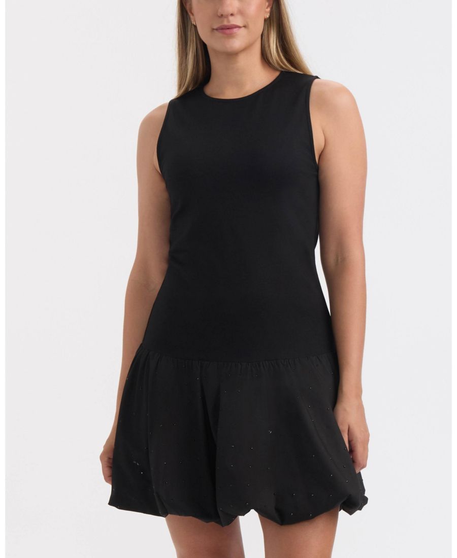 Добавьте игривости в свой гардероб с помощью этого платья без рукавов с юбкой-баллоном. Сочетание облегающего трикотажного лифа и объемной хлопковой юбки-баллона, украшенной стразами, делает это платье идеальным ярким элементом вашего гардероба.
