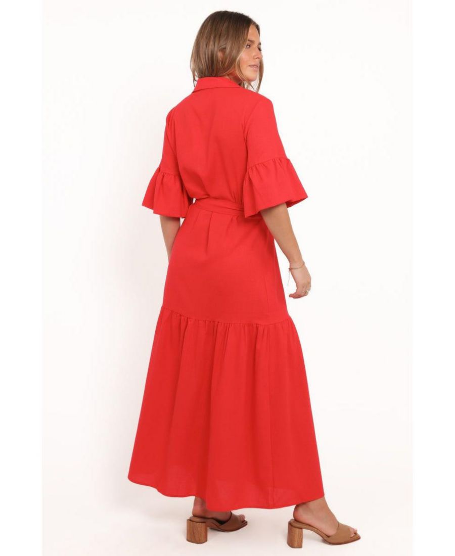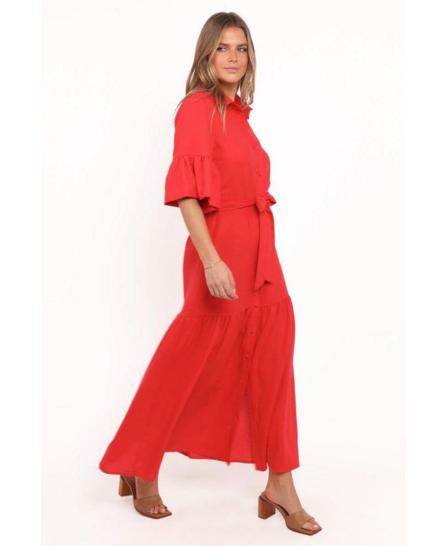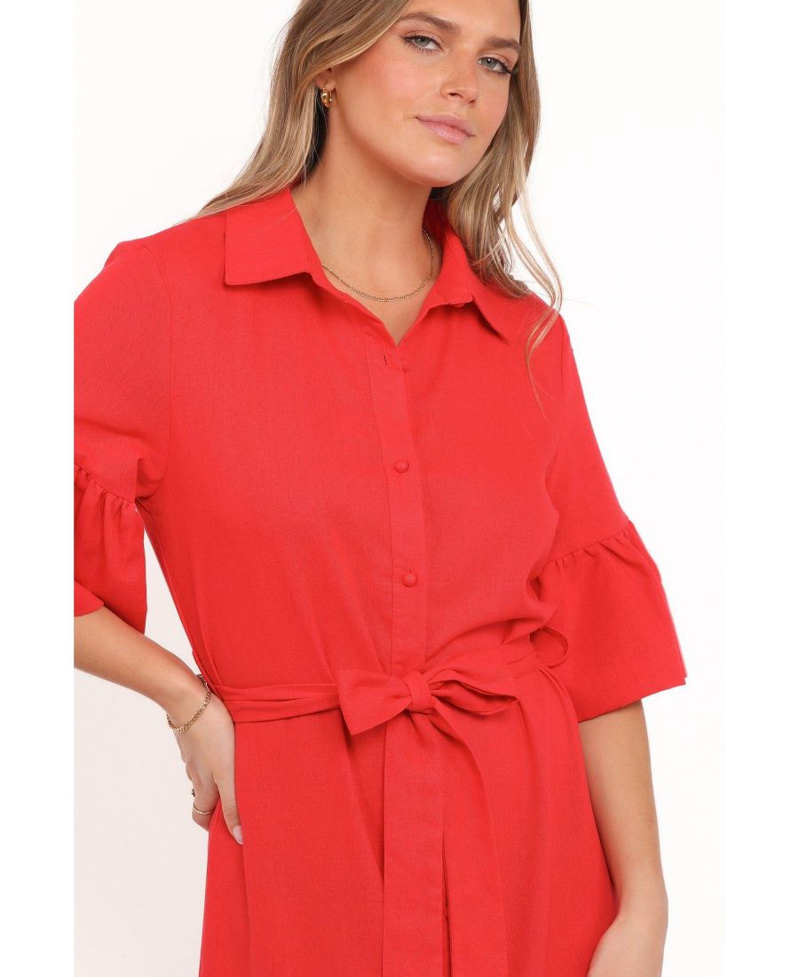 Представляем платье Kirrily Midi Dress смелого, пленительного красного цвета. Платье средней длины, создающее вневременной силуэт, с элегантным отложным воротником и рукавами средней длины, сочетает в себе изысканность и удобство на каждый день.
