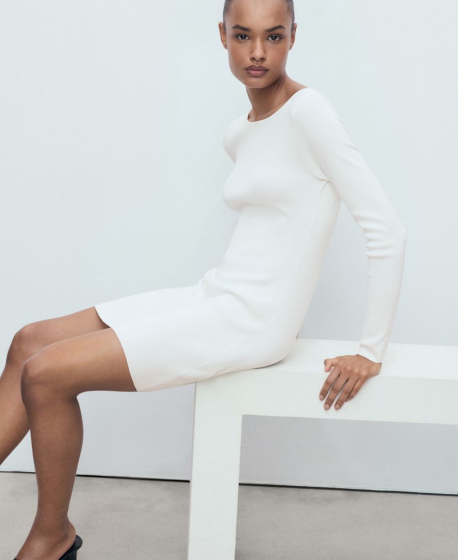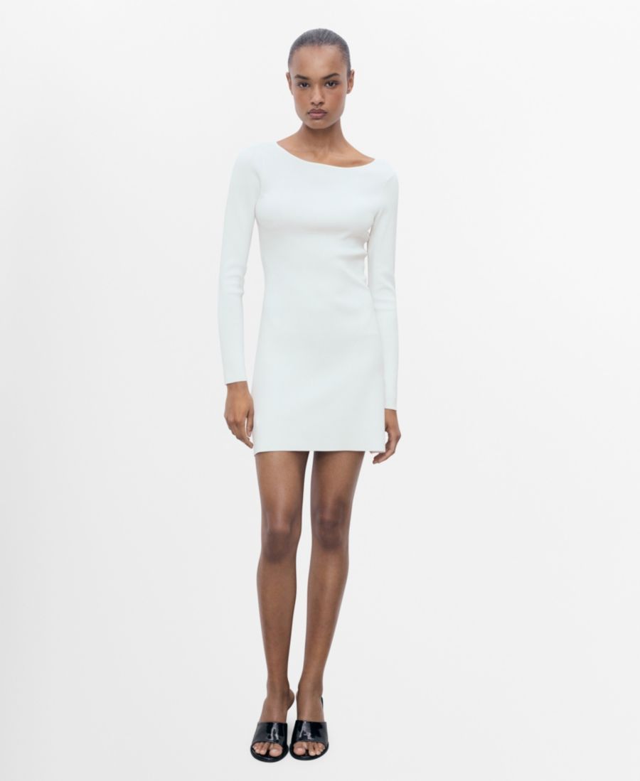 Женское вязаное платье с открытой спиной MANGO, Off White