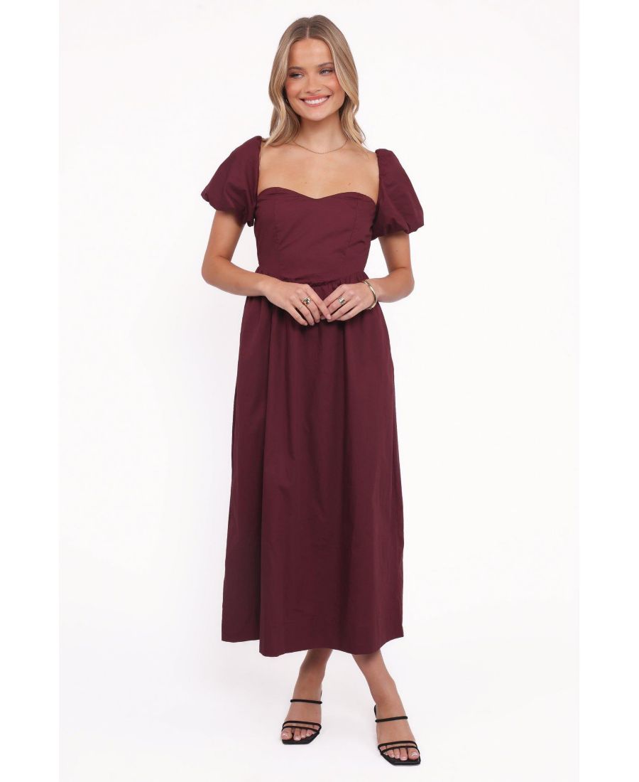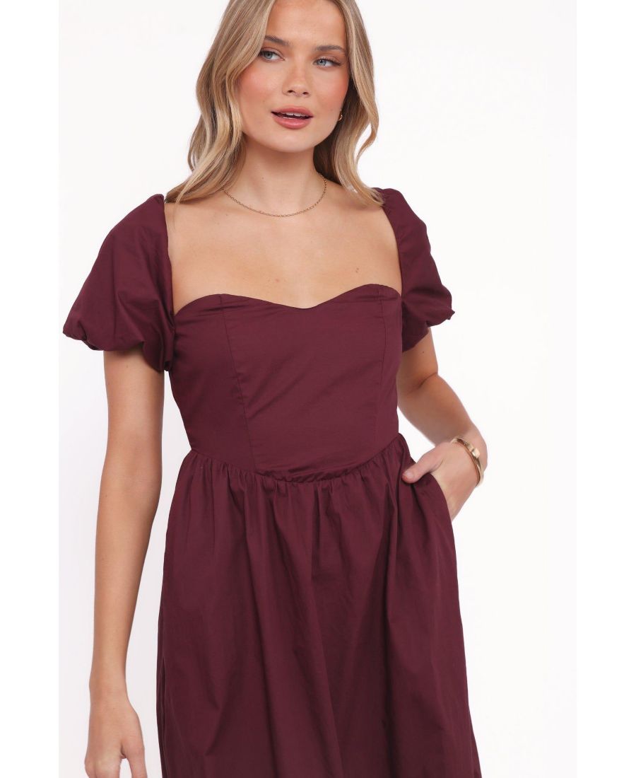 Произведите впечатление с помощью платья-миди Remira вишневого цвета. Это платье сочетает в себе элегантность и практичность благодаря А-образному силуэту юбки и функциональным карманам, идеально подходящим для хранения необходимых вещей.