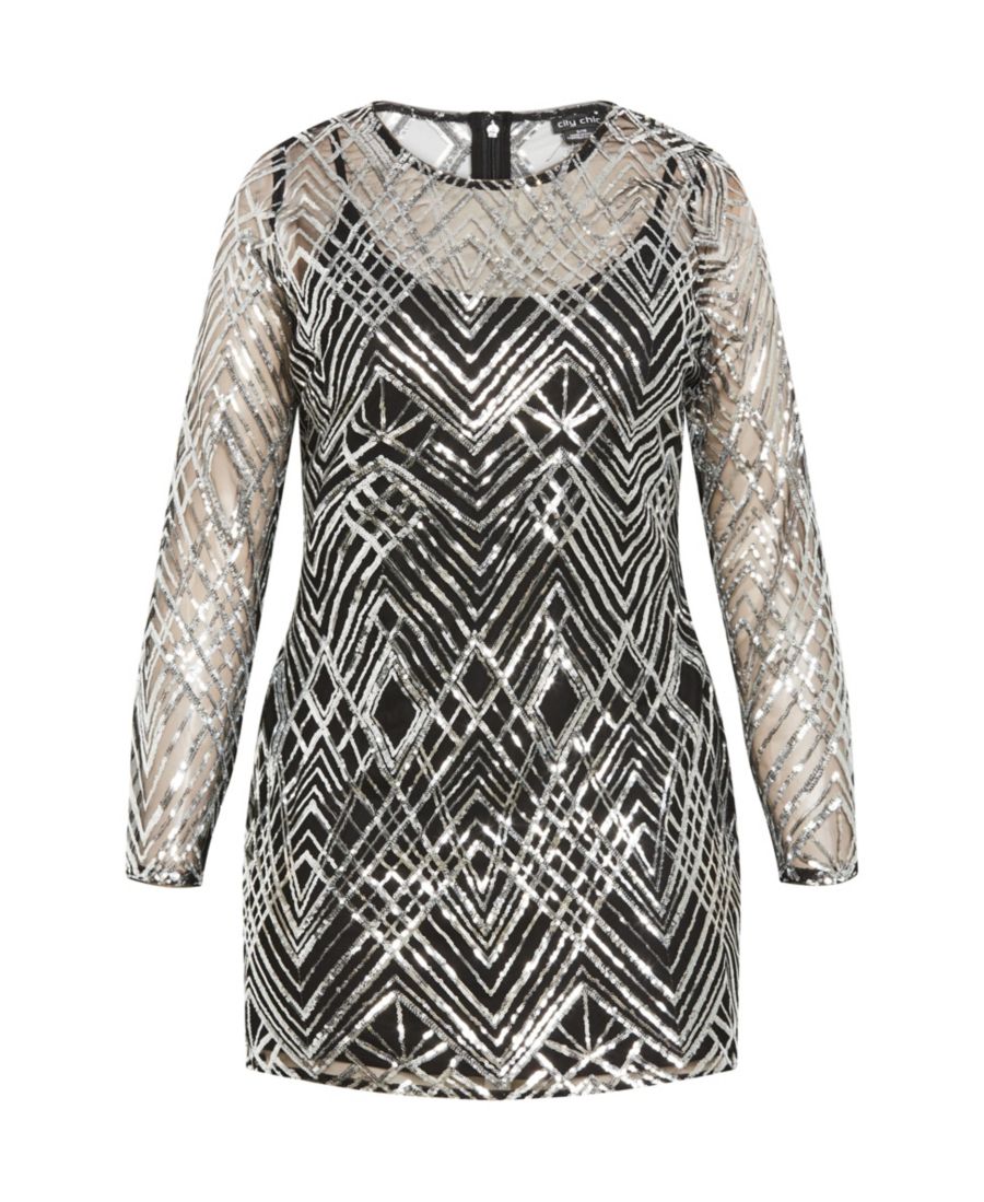 Женское платье Braylin с пайетками CITY CHIC, Silver geo