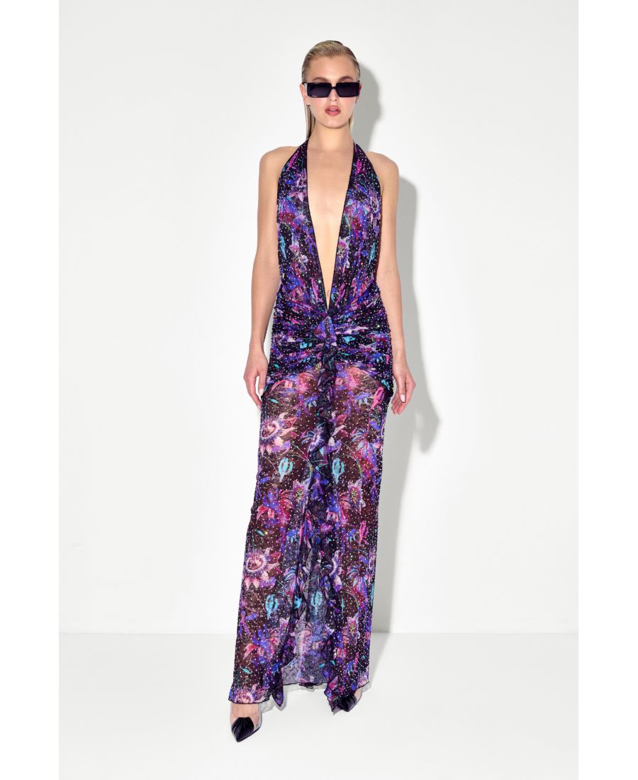 Платье Felix излучает вневременную элегантность благодаря вышивке камнями и черному цветочному узору. Воротник-халтер подчеркивает декольте, а длина макси создает изысканный и струящийся силуэт. Изысканный выбор для особых случаев.