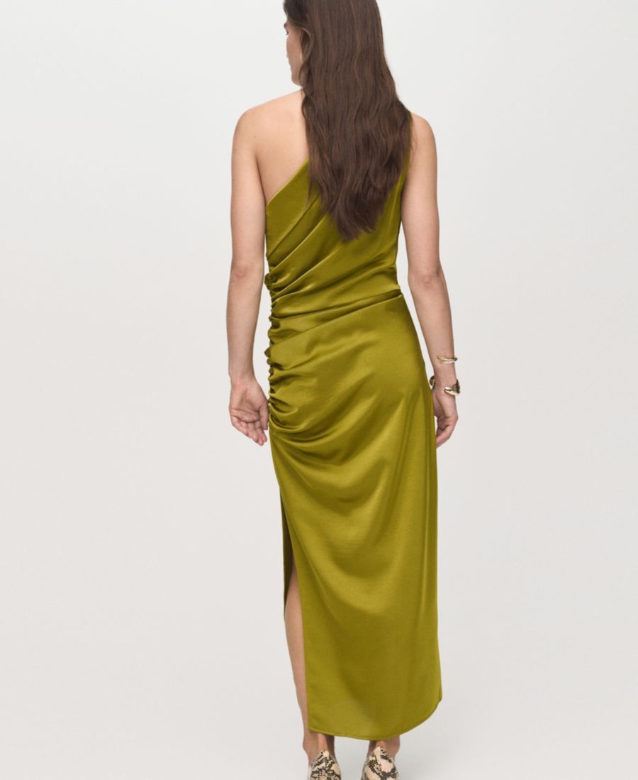 Женское асимметричное атласное платье MANGO, Olive Green 7 538₽