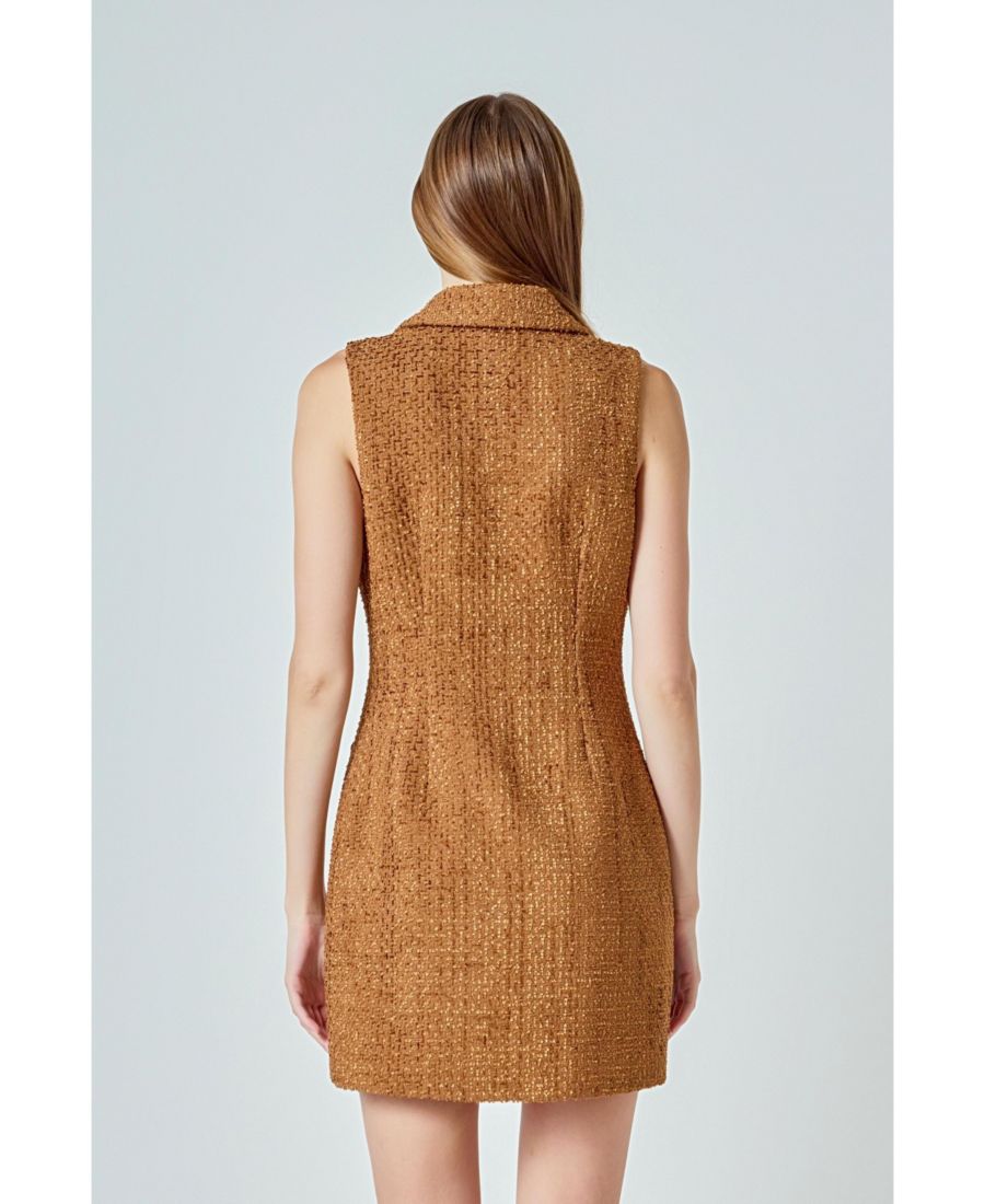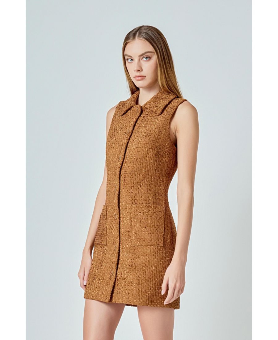 Женское твидовое мини-платье с воротником endless rose, Camel