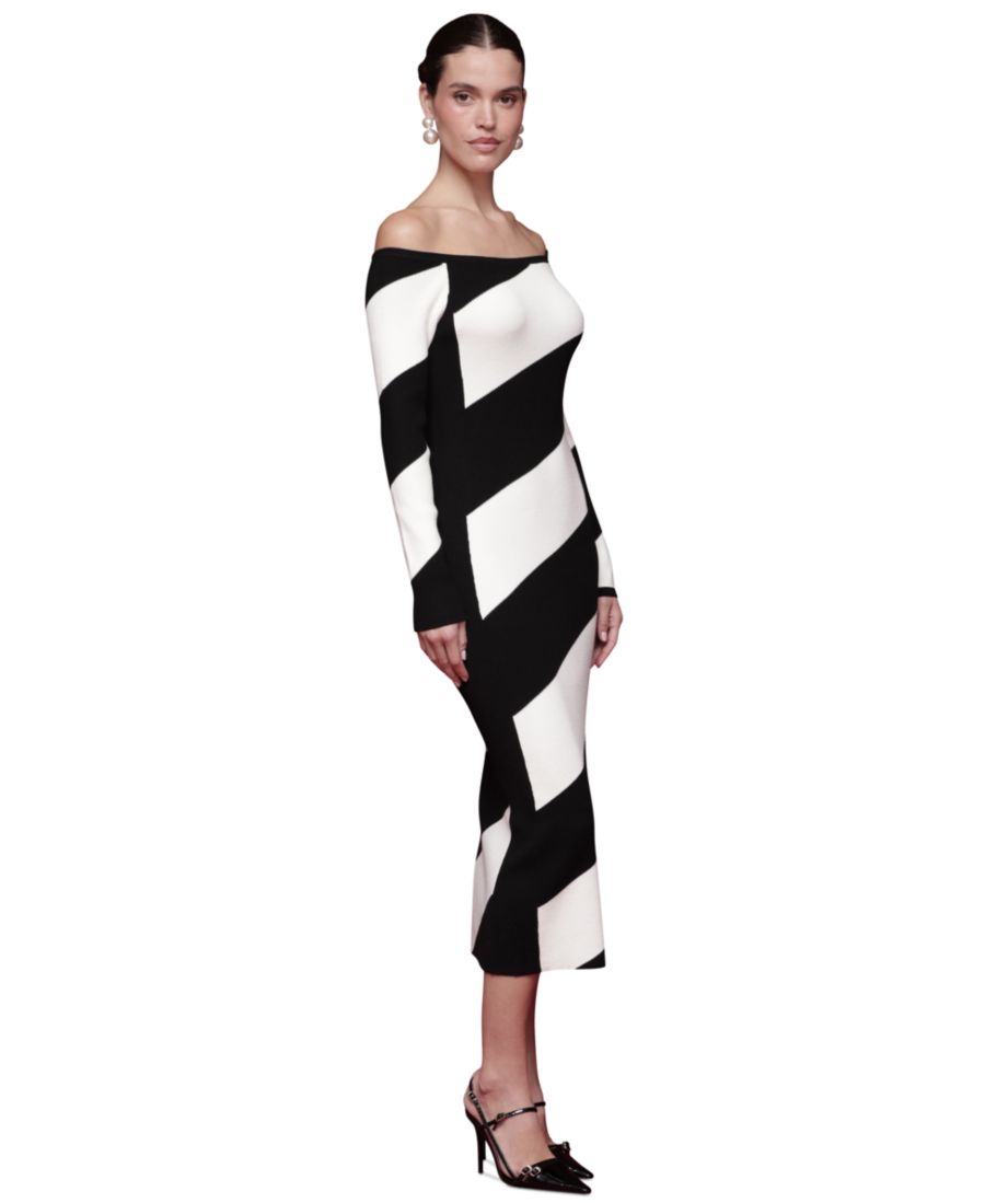 Женское платье-свитер миди с открытыми плечами Avec Les Filles, Black/ivory