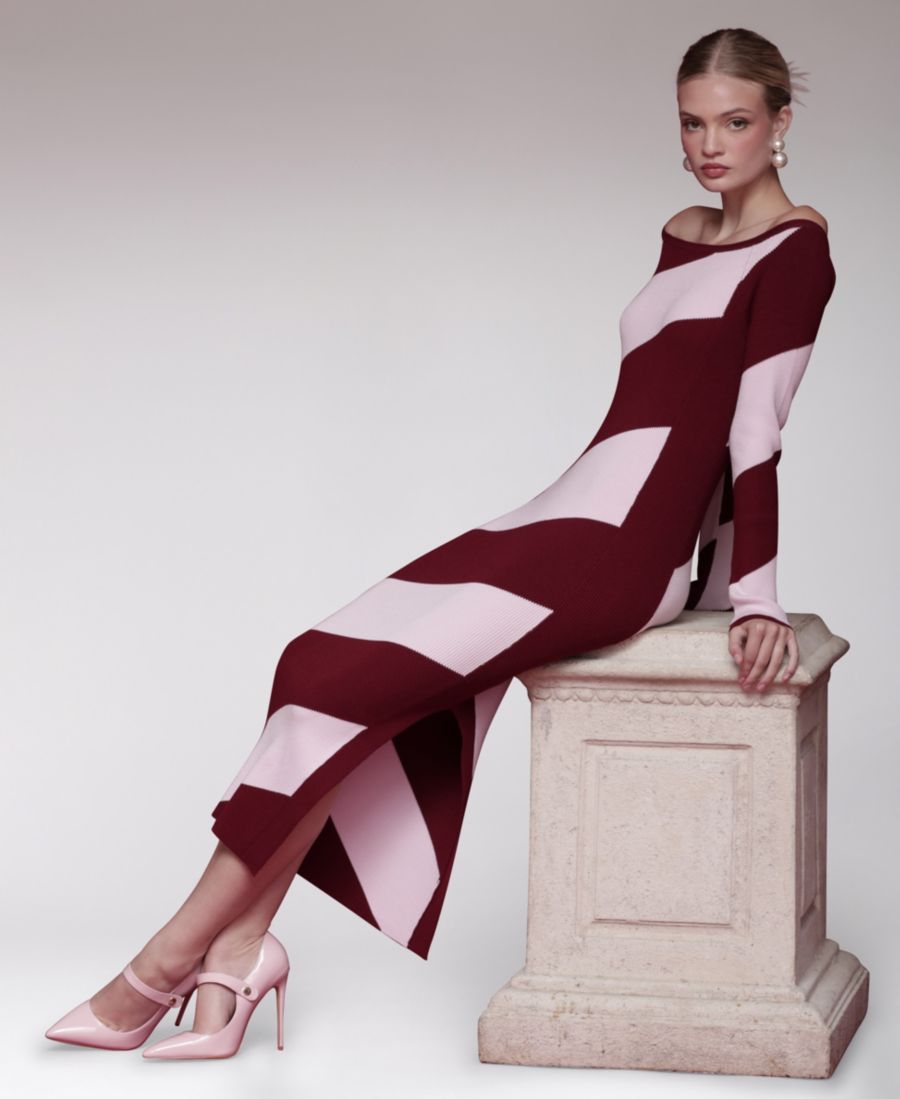 Женское платье-свитер миди с открытыми плечами Avec Les Filles, Red/pink 17 843₽