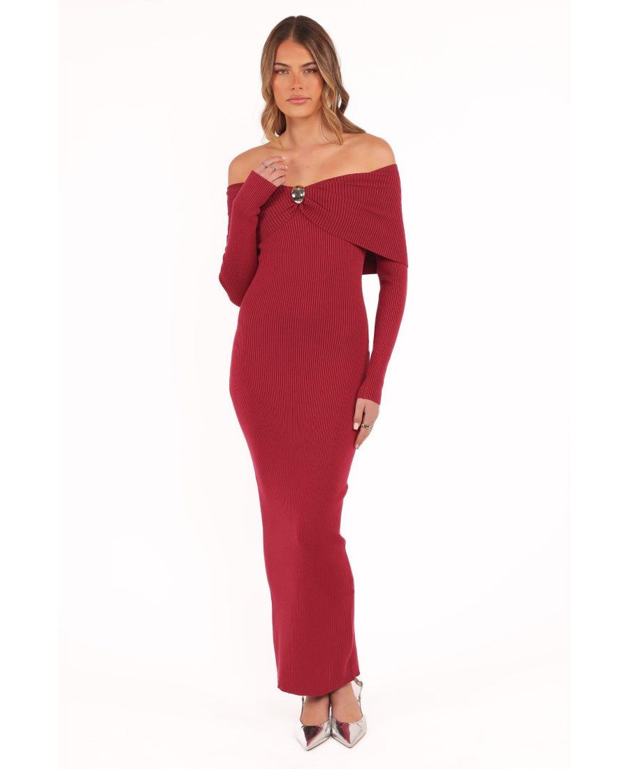 Привлеките всеобщее внимание и произведите впечатление в трикотажном платье Lindsey темно-красного цвета. Это облегающее платье средней длины с открытыми плечами и прямым вырезом горловины излучает непринужденную элегантность.