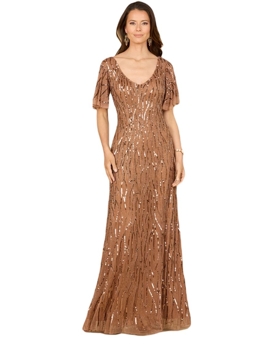 Женское расшитое бисером платье с рукавами-накидкой Lara, Mocha 55 001₽