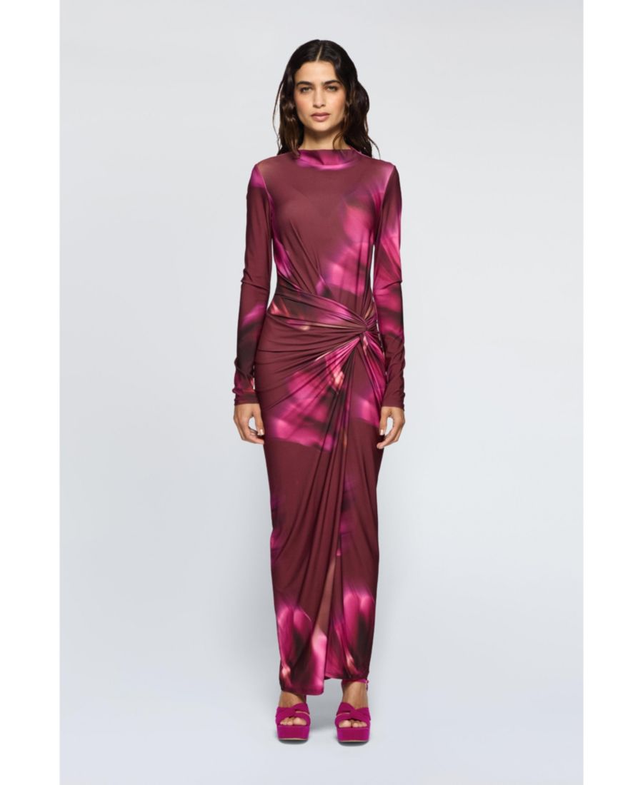 Платье-макси Athena с боковым перекручиванием, с длинными рукавами. Оно выполнено из потрясающей трикотажной ткани с блестящим эффектом. Боковой перекручивание создает элегантный образ и очень выгодно подчеркивает фигуру.