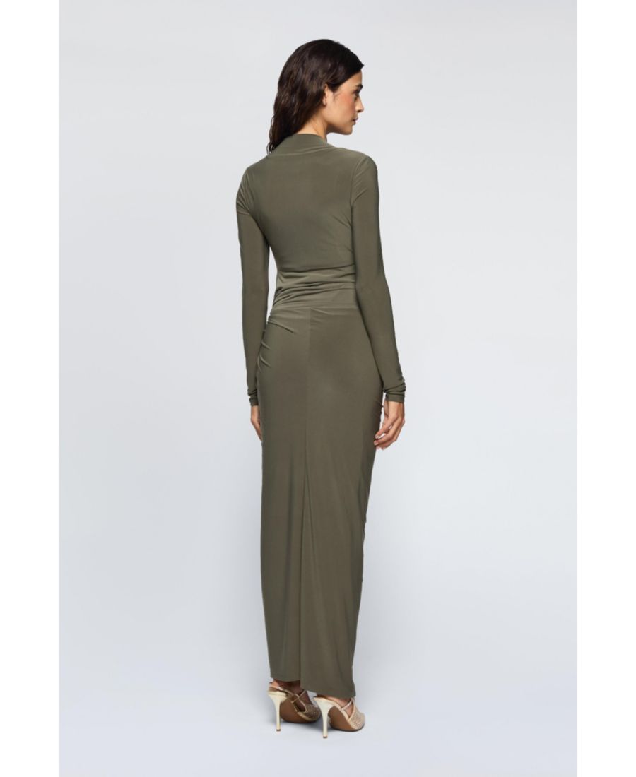 Платье-макси Athena с боковым перекручиванием, с длинными рукавами. Оно выполнено из потрясающей трикотажной ткани с блестящим эффектом. Боковой перекручивание создает элегантный образ и очень выгодно подчеркивает фигуру.