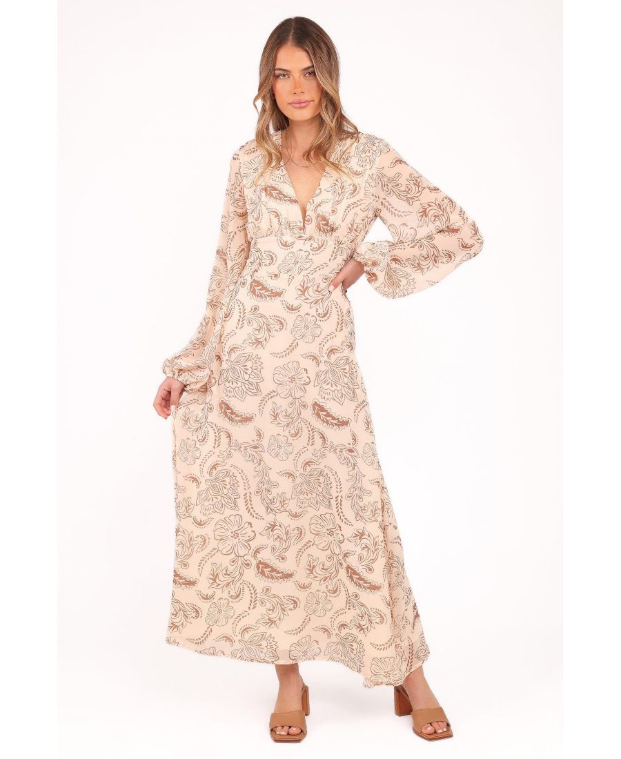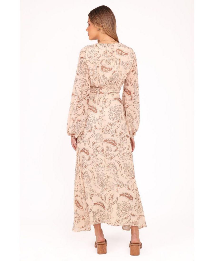 С легкостью подчеркните свой стиль с помощью платья-миди Riba в коричневом цвете пейсли. Платье с эффектным глубоким V-образным вырезом и длинными рукавами с эластичными манжетами сочетает в себе элегантность и комфорт.