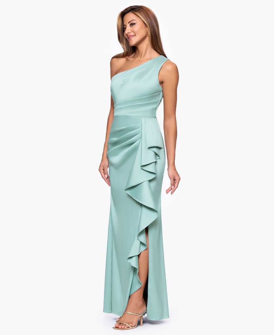 Произведите незабываемое впечатление в этом длинном платье на одно плечо от XSCAPE. Приталенный крой и застежка-молния обеспечивают привлекательный силуэт, идеально подходящий для матери невесты или гостьи на торжестве.