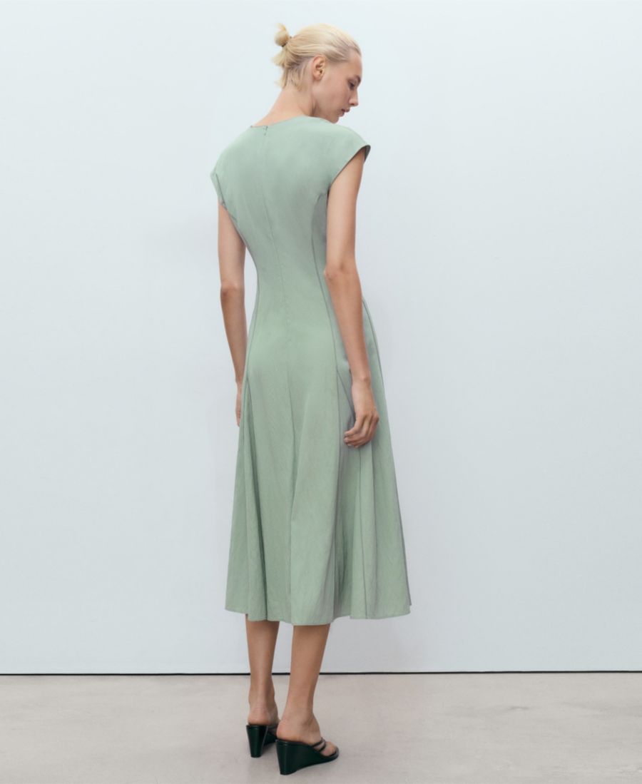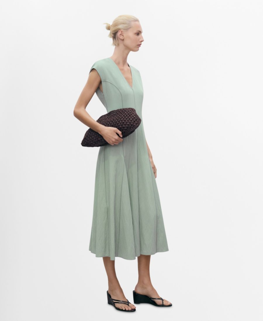 Женское платье с V-образным вырезом и декоративной строчкой MANGO, Green