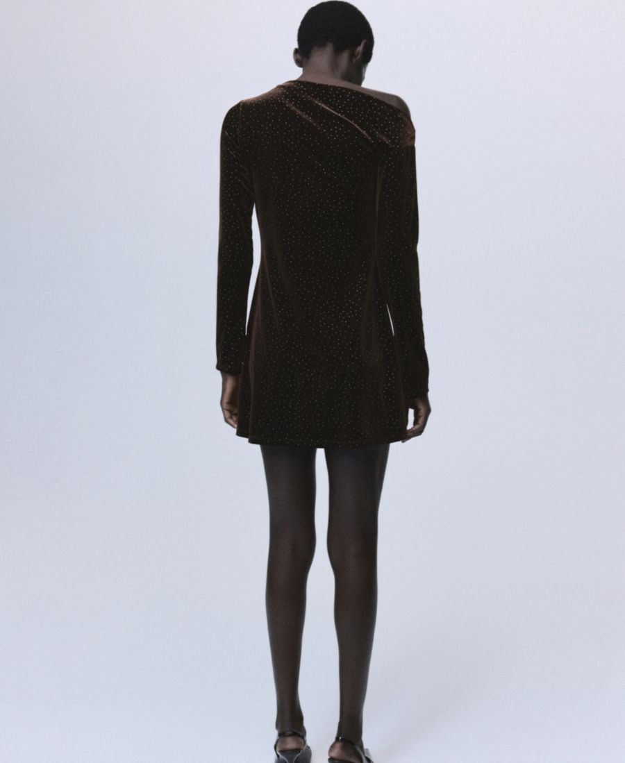 Женское асимметричное бархатное платье с блестящими деталями MANGO, Brown 6 948₽