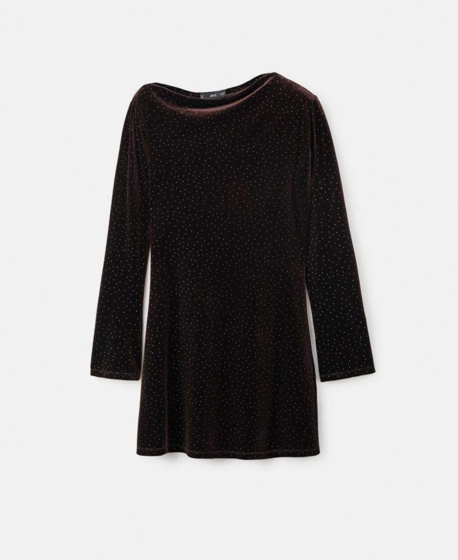 Женское асимметричное бархатное платье с блестящими деталями MANGO, Brown