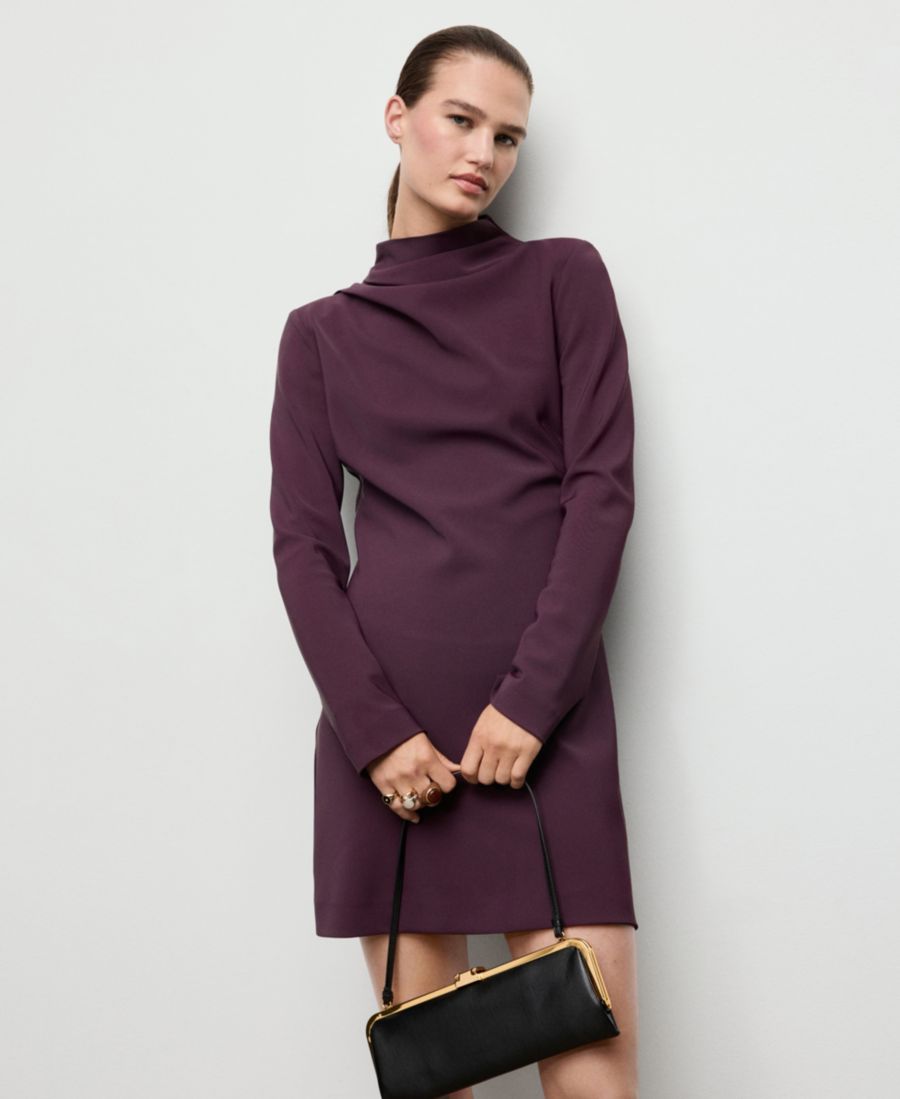 Женское платье с драпированным воротником и длинными рукавами MANGO, Purple