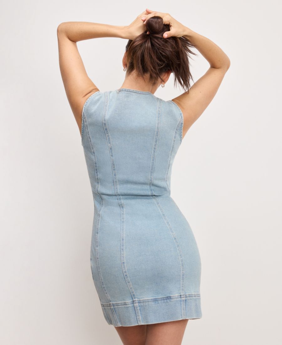 Подчеркните свою фигуру в этом облегающем мини-платье без рукавов от Good American со стильным квадратным вырезом. Пуговицы спереди добавляют классический и декоративный штрих к элегантному, облегающему силуэту.