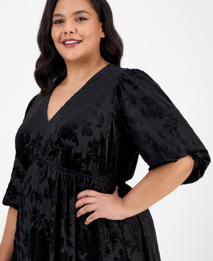 Платье миди из бархата с эффектом выгорания больших размеров Robbie Bee, Black
