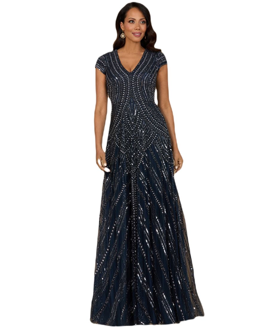 Это великолепное платье с короткими рукавами украшено изысканной вышивкой бисером и имеет эффектный V-образный вырез. Идеально подойдет для матерей невесты или жениха, которые хотят произвести впечатление.