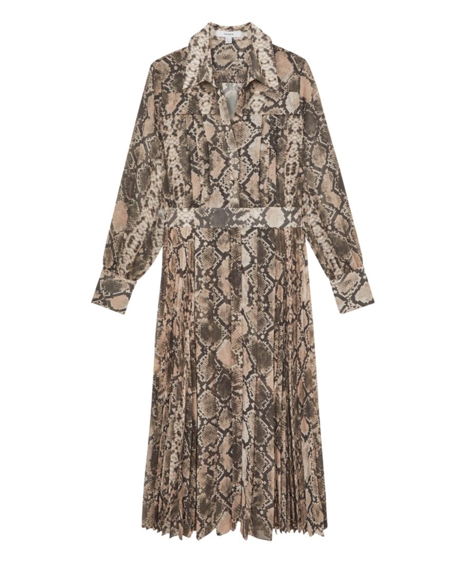 Женское плиссированное платье миди с змеиным принтом REISS, Neutral