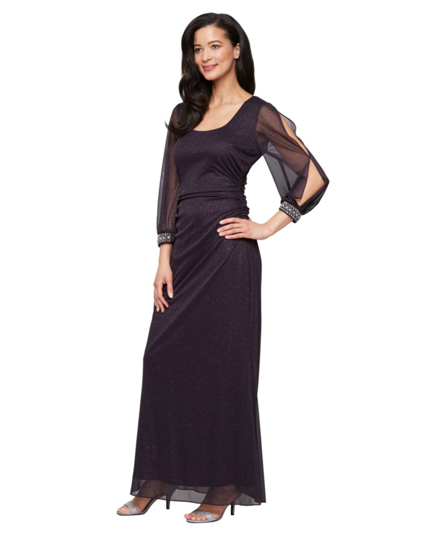 Укороченное длинное платье из блестящей сетки SL Fashions, Plum