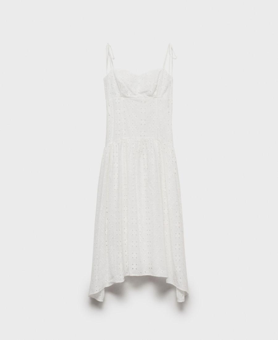 Женское миди-платье с ажурной отделкой MANGO, White