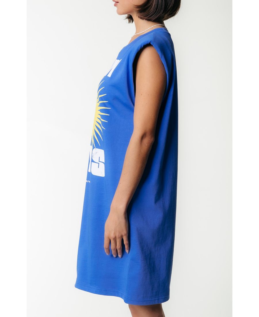 Наш бестселлер - трикотажное платье-футболка без рукавов с подплечниками. Свободный прямой силуэт и фирменные принты Colourful Rebel помогут вам выделиться этим летом. Идеальное платье на каждый день!
