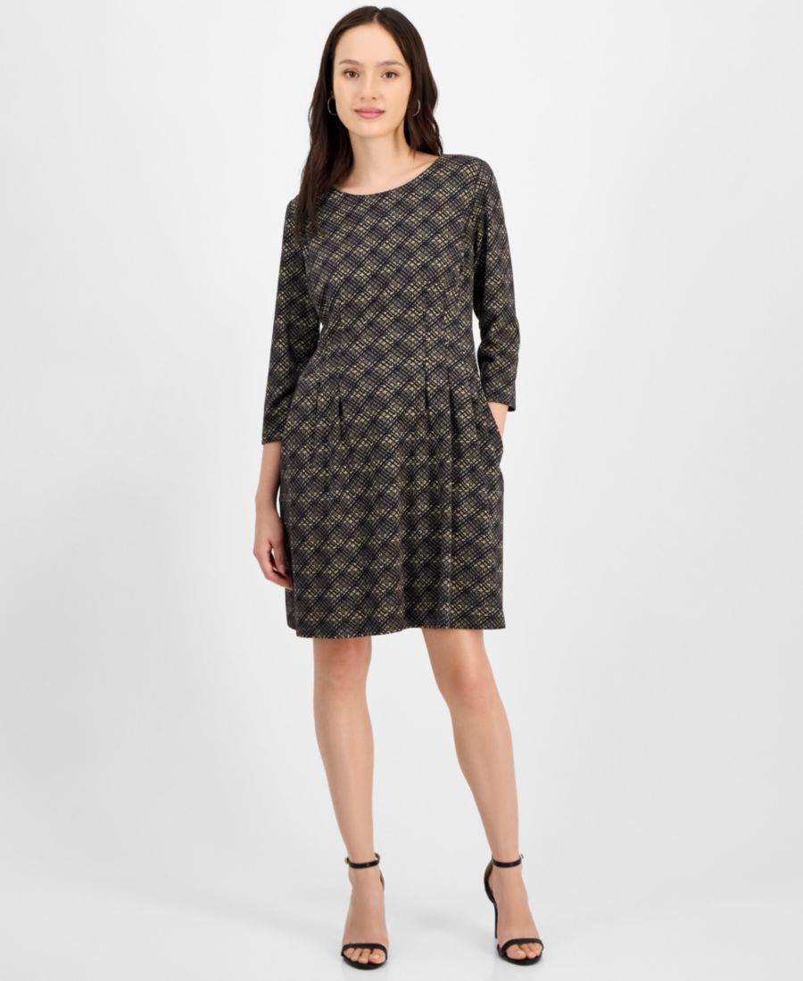 Платье для невысоких девушек с принтом, круглым вырезом и рукавами 3/4 Connected, Cam
