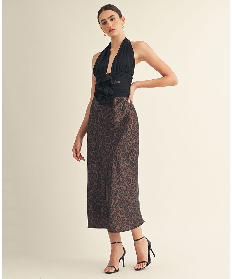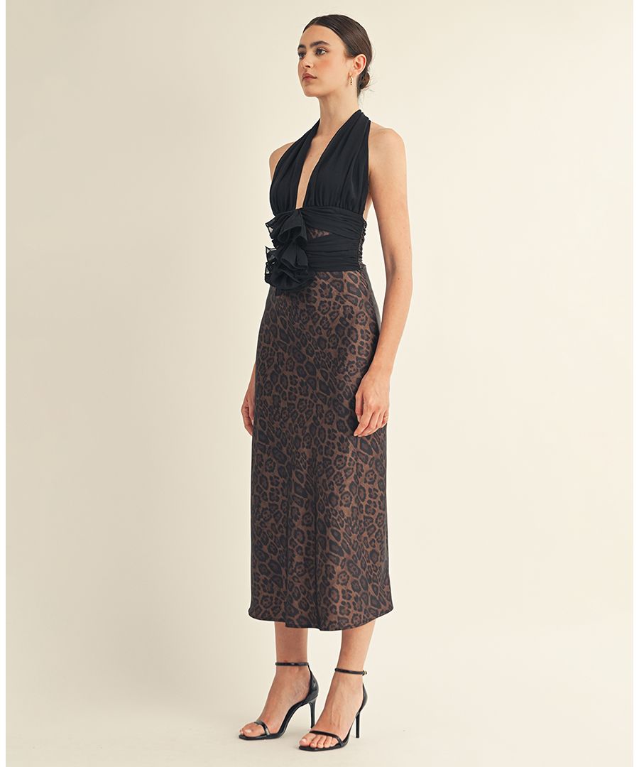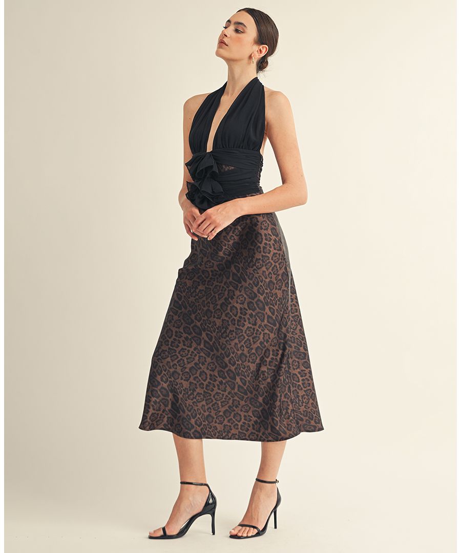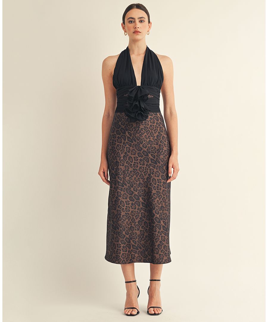 Женское миди-платье Kessara с завязками на шее и бантом AROSE STUDIO, INC, Dark brown leopard