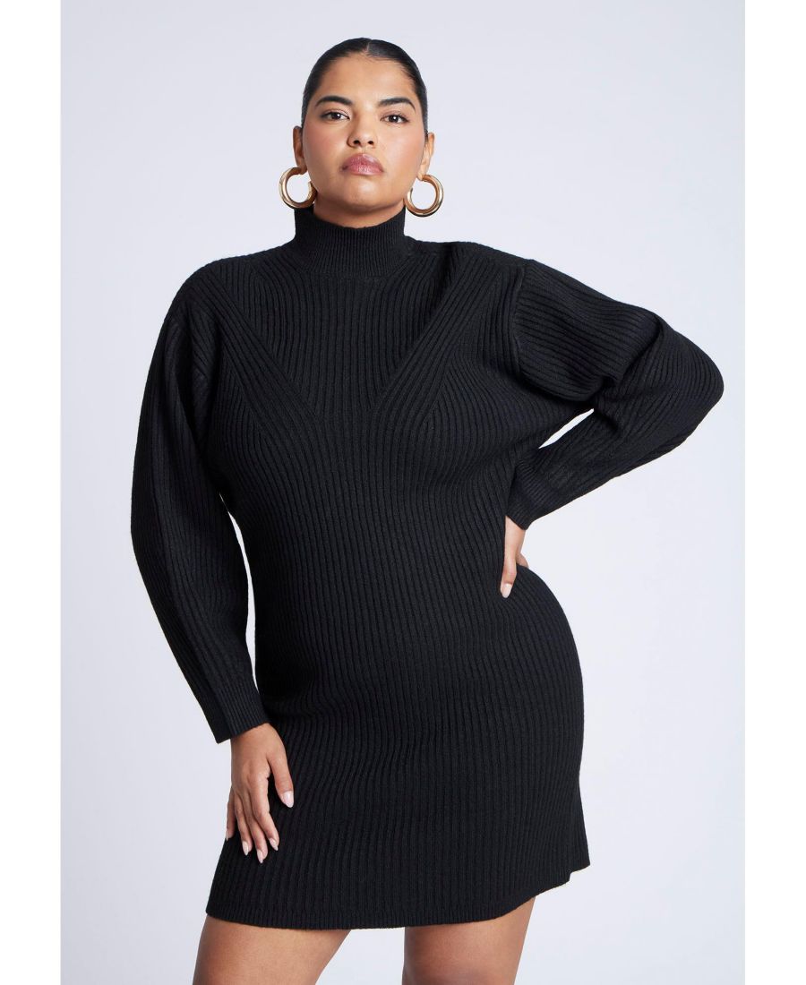 Женское мини-платье-свитер с высоким воротником ELOQUII, Black onyx
