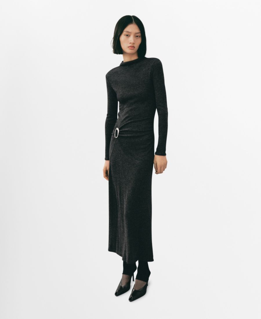 Четко выраженные складки придают платью Ruched Dress With Ring от Mango изысканность. Это длинное облегающее платье имеет высокий воротник, длинные рукава, присборенную талию и декоративное кольцо.