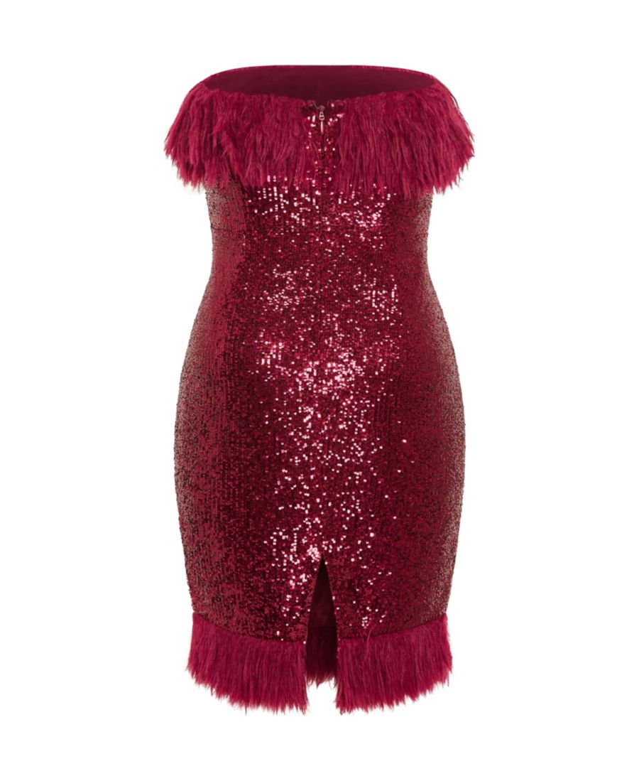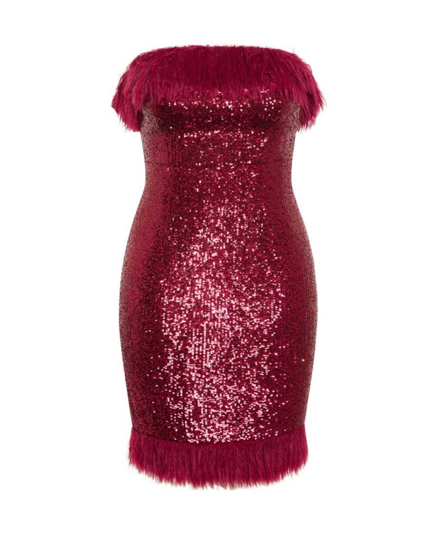 Почувствуйте себя настоящей моделью в платье Ezra. Платье без бретелей, полностью расшитое пайетками, с отделкой из искусственных перьев на лифе и подоле - вы будете блистать всю ночь напролет.